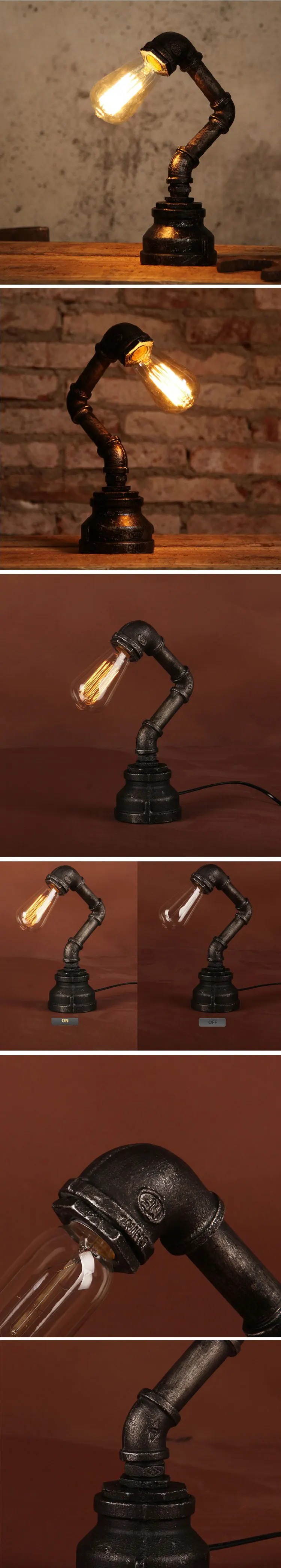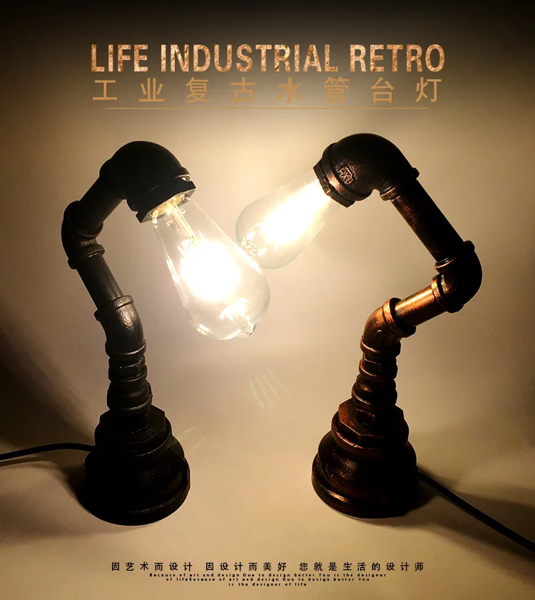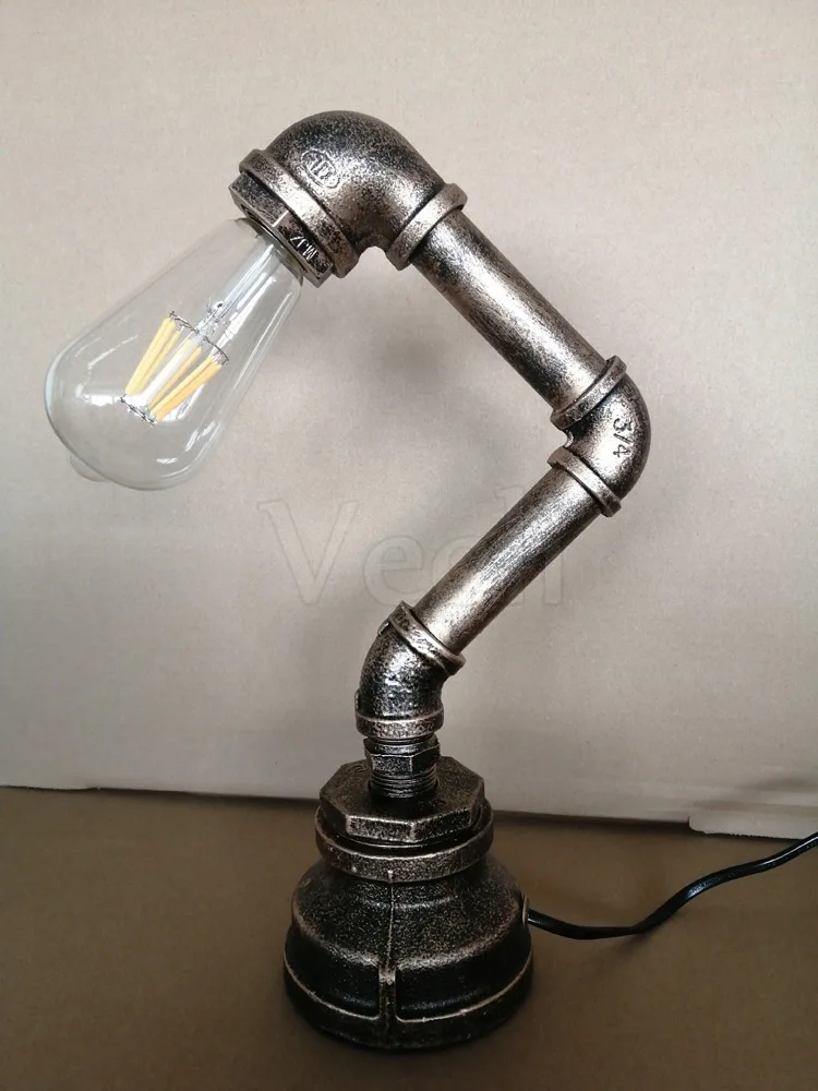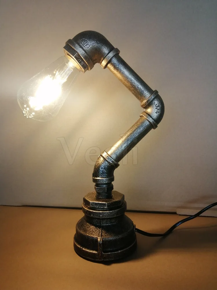 Industrial Wind Water Pipe Table Light Loft Lamp E27 Edison Desk Light For Bedroom Bedside Study Light